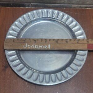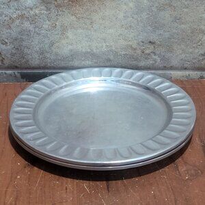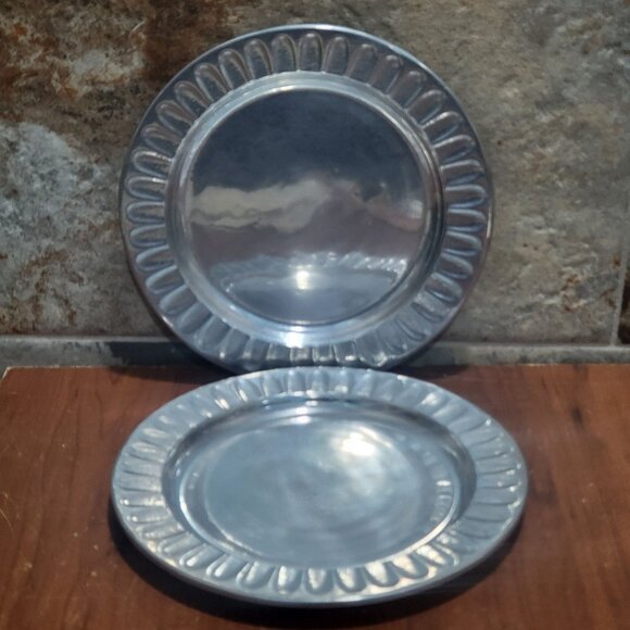 Two vintage Wilton Armetale plates with fluted edges. They are made from a non-toxic, aluminum-based alloy called Armetale, designed to look like pewter.