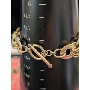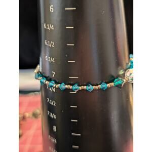 Two Vtg Gold Tone Blue Bicone Crystal & Gold Loop Chain Toggle Bracelets. Pre-owned, these bracelets are in good vintage condition.