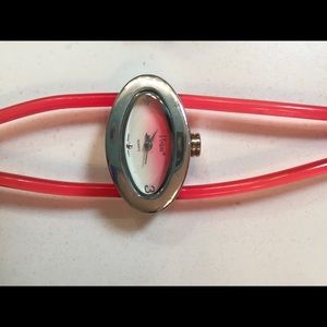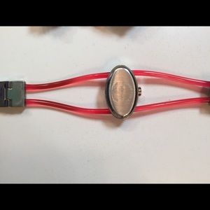 1) Ashley Red enamel Watch with crystal bezel. 8” but links could be removed. This is a very heavy watch. Pristine condition. New battery.