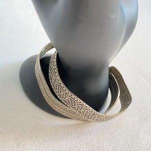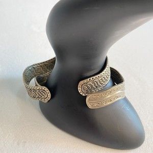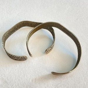 Two Wavy Cuff Bracelets Tarnished Silver Tone Ornate Etchings