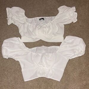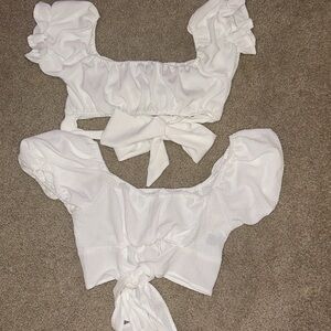 Two White Shein XS Crop Tops - first has some staining on bow as shown in pic
