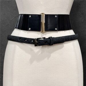 *Two Women's Belts - Grey Wool and Black Vegan Leather*
