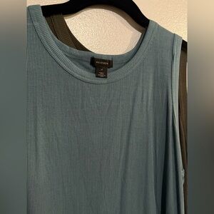 Stylish and comfortable tank tops by Halogen. Perfect for layering or wearing alone. Brand new with tags, both have never been worn. I do not have the green one that is just to model and show you the shirt. I have the blue and dark olive green. I would like to sell these together , Both Size Extra Large.