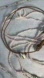 Pink and clear seed beads which have a brown weaved cord at the top back area