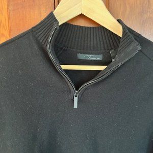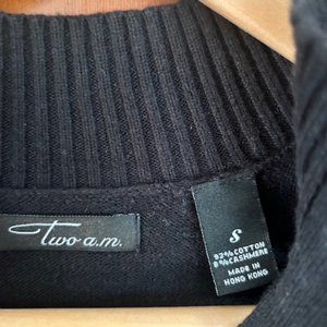 *Great condition and really soft. 92% cotton/8% cashmere. Black. Small size, but not overly small.