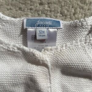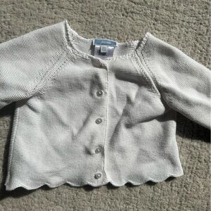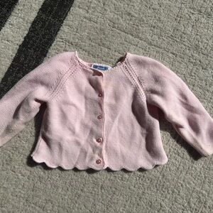 Lot of two cotton cardigans. One is white, the other is pink. The pink cardigan has some light stains (see photos). Size is 12 months.