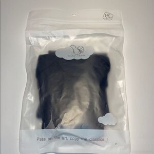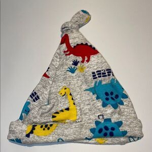Adorable kids' hats featuring a playful dinosaur print and a classic black design. Perfect for adding a fun touch to any outfit. Plain black baby hats. Unopened baby onesie. I don’t know the size or design of the baby onesie.