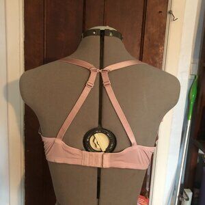 Simple t-shirt bras with lightly padded cups and underwires have an extra clasp on the back. These bras have served me well and are still in good condition. I'm selling them because they no longer fit me. $10 for two and only sold as a set.
