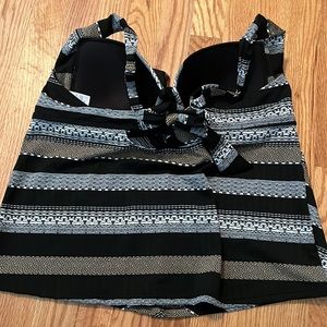 Two bathing suit tops and one pair of bikini bottoms. Both tops are size X-LARGE. Both are time & tru brand.. bottoms are shekini brand and match the brown and black top. All in excellent condition.