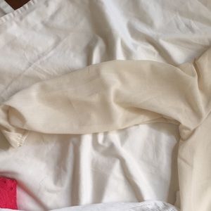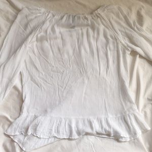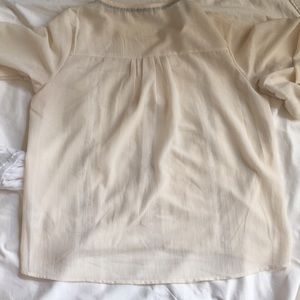 2 - off white blouse with lace details, sheer, great condition, no stains or pilling, easy to wash