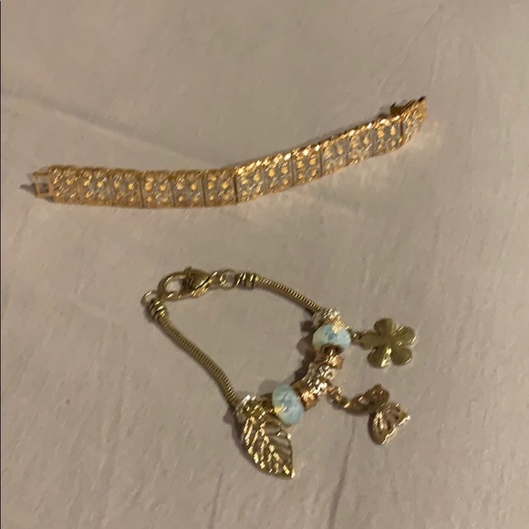 Two bracelet one flashy and elegant the other like every day wear one is gold tone with silver