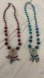 Two burgundy red and turquoise blue Moroccan necklaces