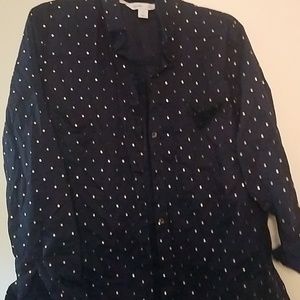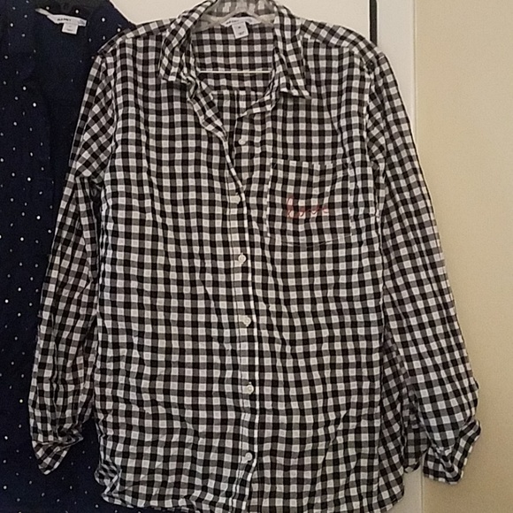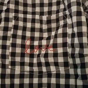 Package Deal!!! One polka Navy and gold button down shirt and one black and white checkered shirt with embroidery love written on chest pocket. Never worn