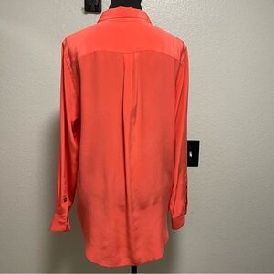 Two by Vince Camuto Bright Coral Long Sleeve Button Down 100% Silk MEDIUM