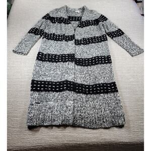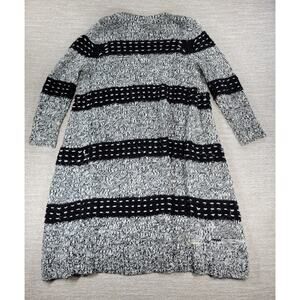 Two by Vince Camuto Chunky Knit Long Cardigan Sweater Black White Wool Blend L