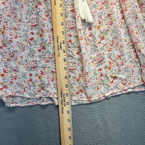 Two by Vince Camuto Floral Peasant Blouse Size Large Shirt Tassel Pink Smock