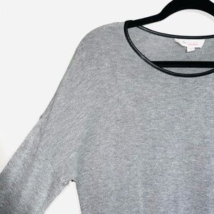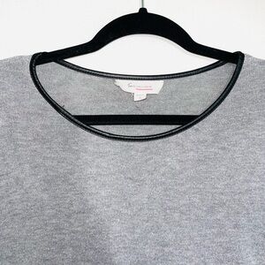 Two by Vince Camuto gray & black mesh trim sweater. In excellent condition! Crew neckline. Leather accent along the neck. Long sleeves. Black sheer mesh along the bottom hem. Heather gray color. Size small.