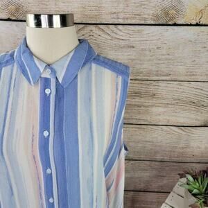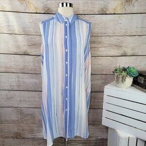 Two by Vince Camuto Pastel Striped Button Down Sleeveless Duster Cover Up Large