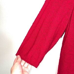 Two by Vince Camuto red knit sweater. In excellent condition! V neckline. Long sleeves. Step bottom hemline. Blouse lining on the frontside. Split open back. Lightweight knit material. Bright red color. Size 2X.