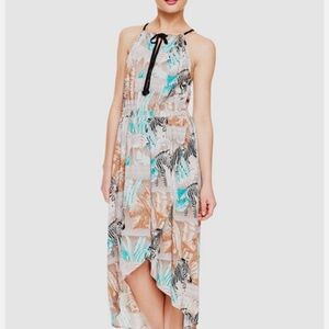 Two by Vince Camuto Tribal Beat Safari Zebra High Low Faux Wrap Midi Dress
