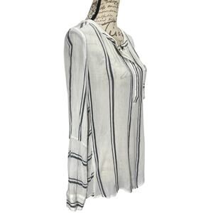 Two by Vince Camuto Women's Striped Tunic Long Sleeve Semi-Sheer Boho Top-Medium