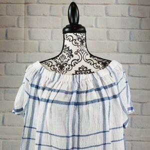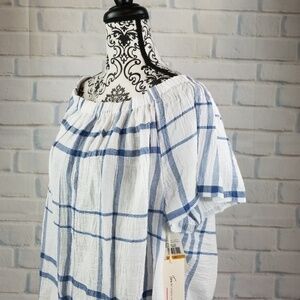 Two by Vince camuto women's short sleeve seersucker check print semi sheer plus size 3x off shoulder