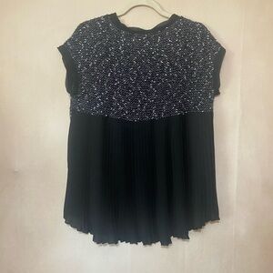Two by Vince Camuto size S tweed mixed media layered look pleated blouse EUC