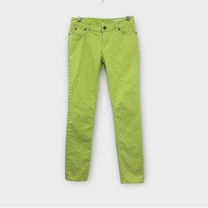 Two by Vince Camuto Retro Y2K Low Rise Skinny Jeans in Green Polka Dot Size 25