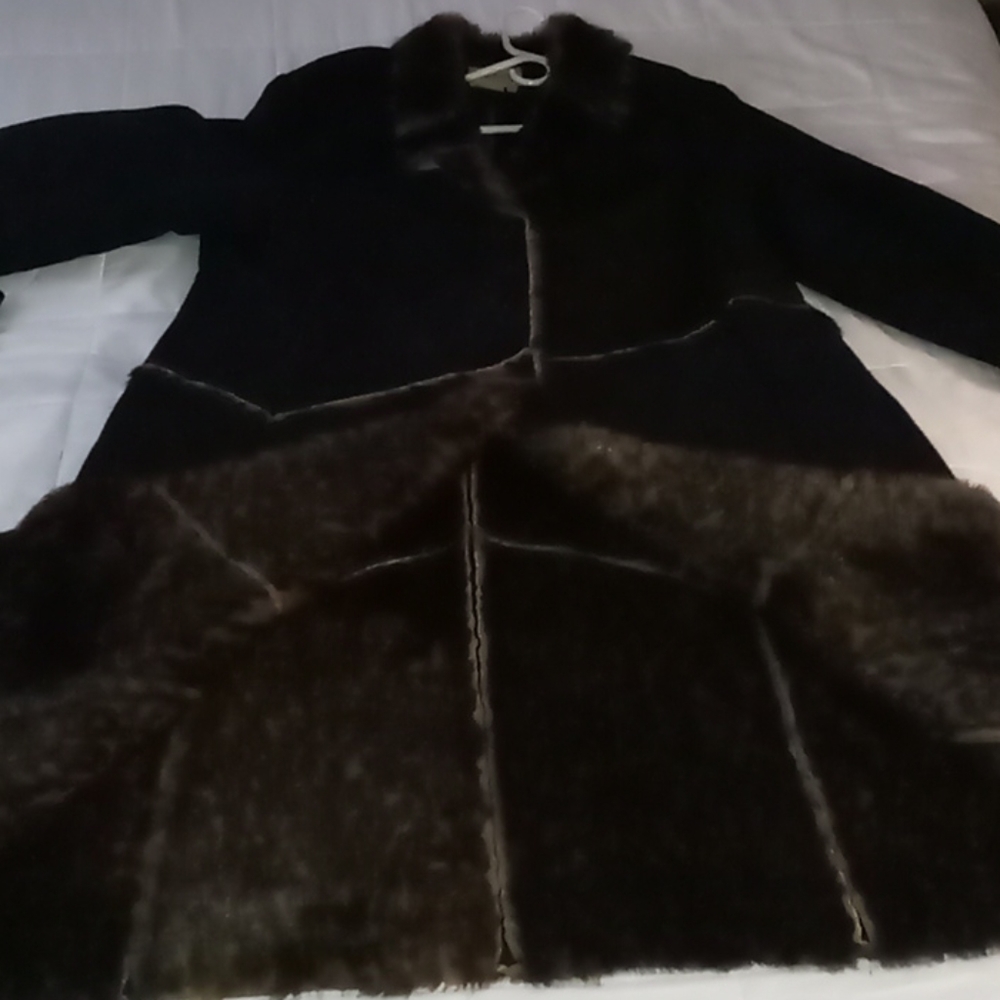 Shiney black faux fur and faux fur leopard maxie .