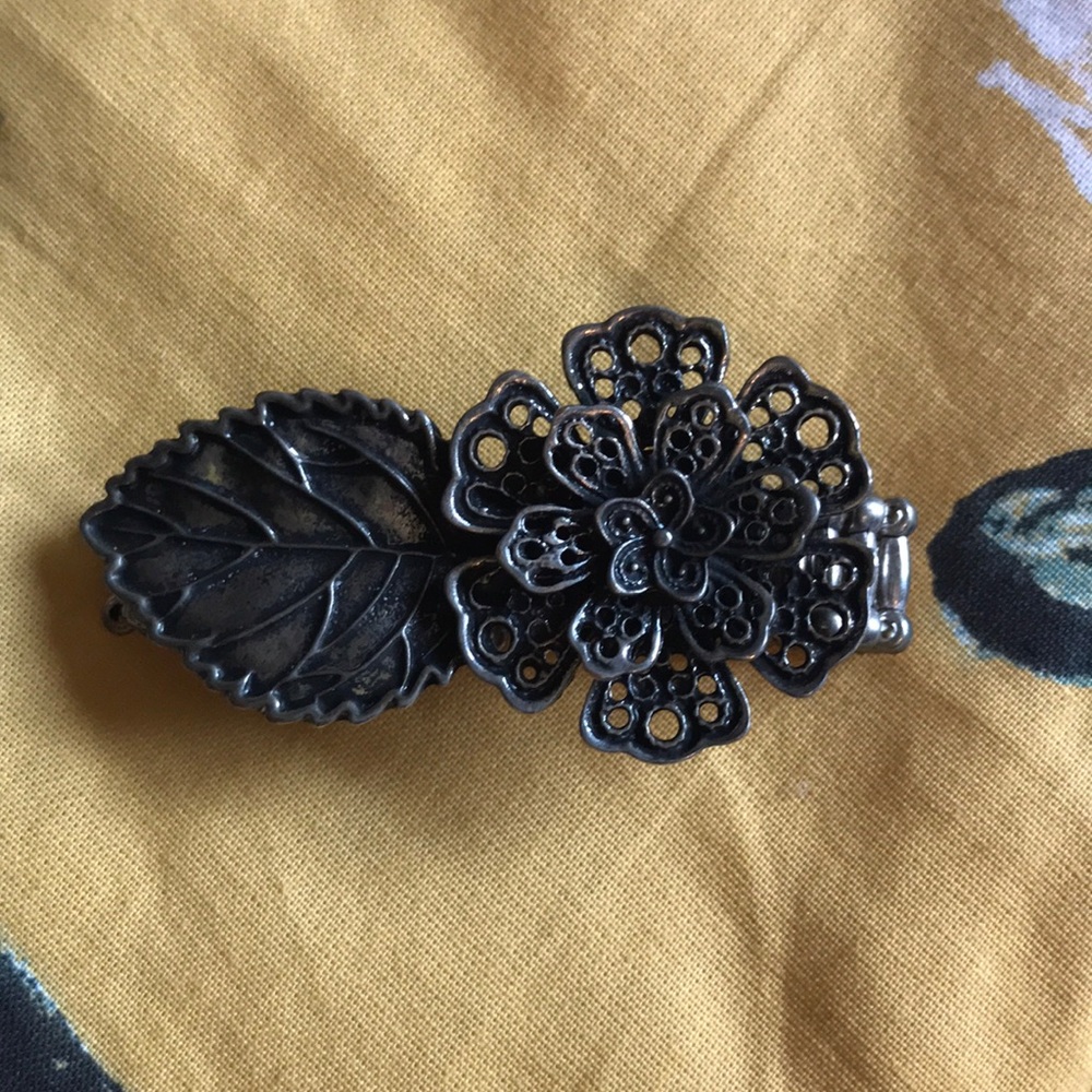 A metal flower and leaf detailed two finger ring Stretch bands Maurice’s brand In great condition