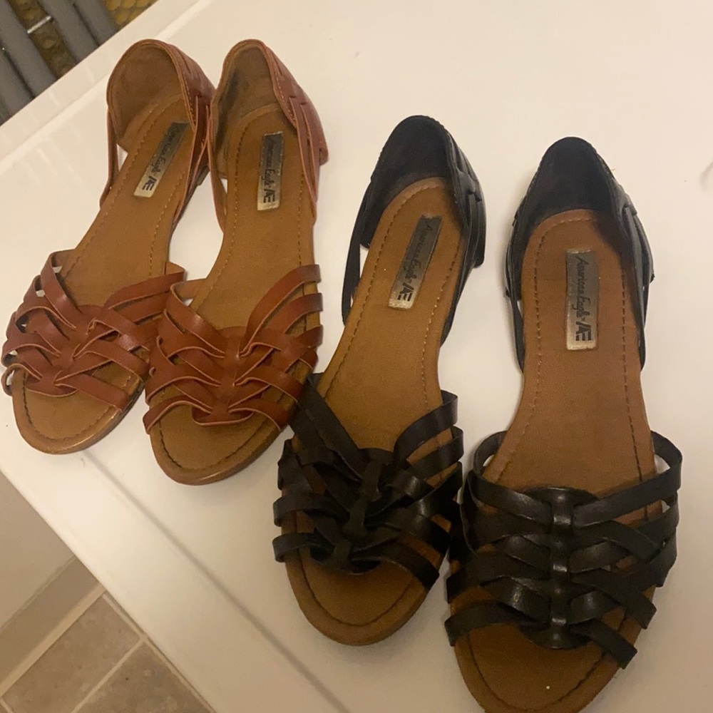 One pair of brown and one pair of black sandals size 9.5 fits like a 9