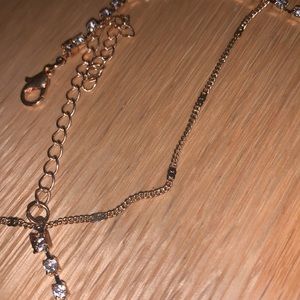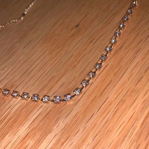 One gold with square diamonds, one gold with very small plates. Adjustable chokers, can be worn together or separately.