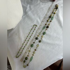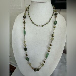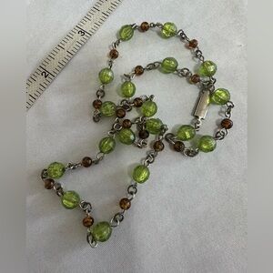 One short and one long with various colors of green and amber colored beads -silvertone wired