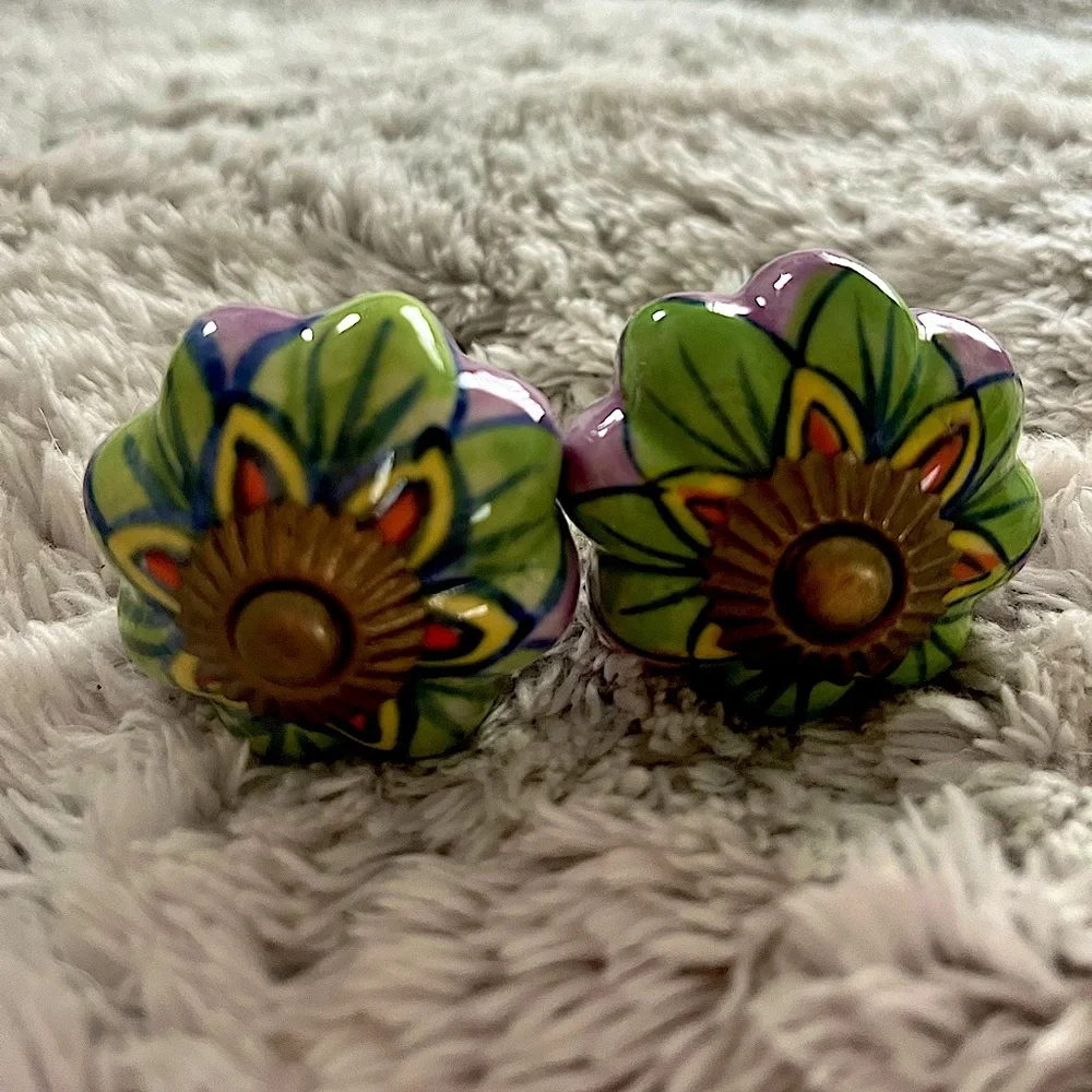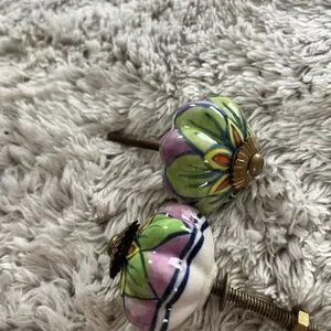 Two hand painted door knobs.