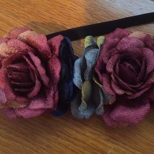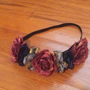 One floral and one jeweled headband. Each worn once as wedding bridesmaid accessories.