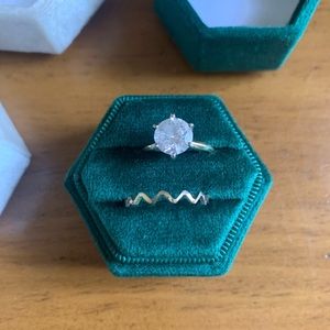 One green & one white hexagon ring boxes. Used once for wedding pictures. Both can hold two rings.