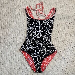 Two in One Tropical Women’s Swimwear in Coral and Black size S
