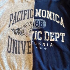 The best of both schools. This upcycled sweatshirt is so soft and comfy you’re gonna want to lounge around all day in it. Great condition overall — the gray side has some piling on the material.