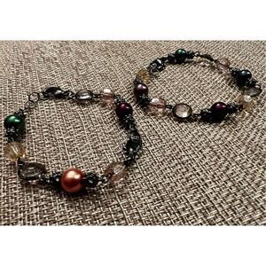Two jewel tone beaded faux pearl bracelets for girls or for very small wrists.