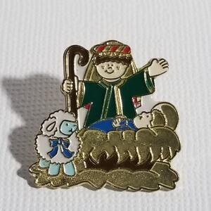 Two lapel pins angel w/ dove Baby Jesus w/ shepherd boy 1"