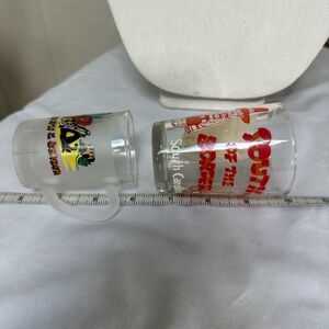 Two souvenir shot glasses from South of the Border