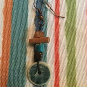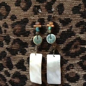 One pair made of ivory shell. Second pair assorted beads in green and brown. 2" length. Sold together.