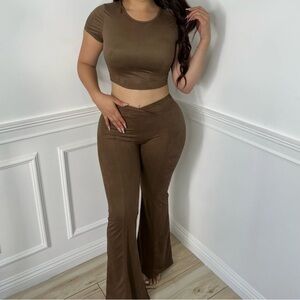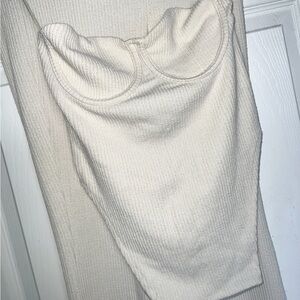 The cream one is from fashion nova Call My Name Ribbed Pant Set - Off White