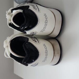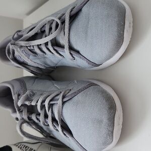 gray and white light Reebok sneakers. says size 9 but fits like a 8.5
