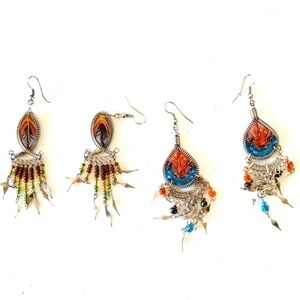 Two pairs of Handcrafted Metallic Thread Bead Dangle Earrings