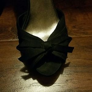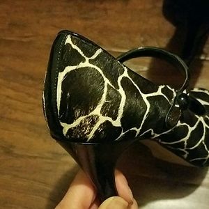 Two pairs of heels. One is Nine West animal print heels and super comfortable. There is slight wear, pictured, but overall in great condition. Second pair is from a different brand, Delicious. Cute satin finish with buckle straps and adorable bow.