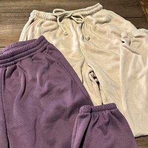 Two pairs of loungewear sweatpants Purple and Tan Size M