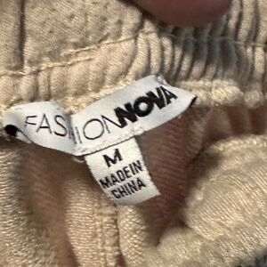 The tan pair is Fashion Nova. They have a drawstring tie at the waist.