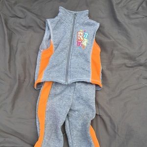 Two pairs of pants omg black and the orange sweatpants comes with the jacket