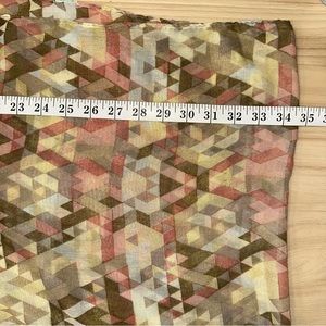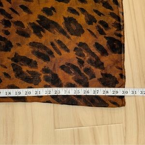 One multi color geometric print infinity scarf and one brown/black cheetah print infinity scarf. Soft and lightweight material. Cheetah scarf has super small snag/hole that is not noticeable when worn (see last two photos)